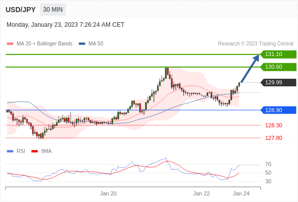 在 128.90 之上,看涨,目标价位为 130.60 ,然后为 131.10 。在 128.90 下,看空,目标价位定在 128.30 ,然后为 127.80。