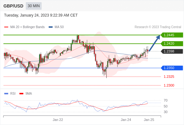 英镑/美元汇率今日分析:在 1.2350 之上,看涨,目标价位为 1.2420 ,然后为 1.2445 。在 1.2350 下,看空,目标价位定在 1.2325 ,然后为 1.2300。