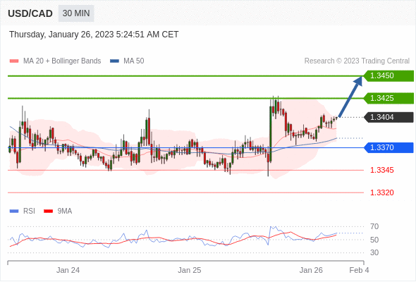 美元/加元汇率今日分析:在 1.3370 之上,看涨,目标价位为 1.3425 ,然后为 1.3450 。在 1.3370 下,看空,目标价位定在 1.3345 ,然后为 1.3320。