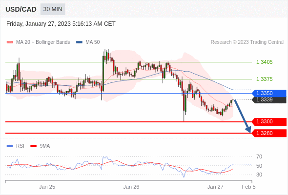 美元/加元汇率今日分析:在 1.3350 之下,看跌,目标价位为 1.3300 ,然后为 1.3280 。在 1.3350 上,看涨,目标价位定在 1.3375 ,然后为 1.3405。