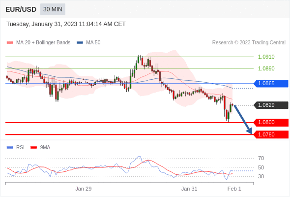 欧元/美元汇率今日分析:在 1.0865 之下,看跌,目标价位为 1.0820 ,然后为 1.0800 。在 1.0865 上,看涨,目标价位定在 1.0890 ,然后为 1.0910。