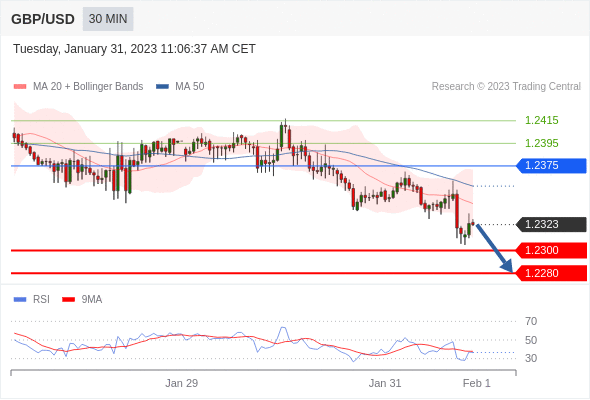 英镑/美元汇率今日分析:在 1.2375 之下,看跌,目标价位为 1.2320 ,然后为 1.2300 。在 1.2375 上,看涨,目标价位定在 1.2395 ,然后为 1.2415。