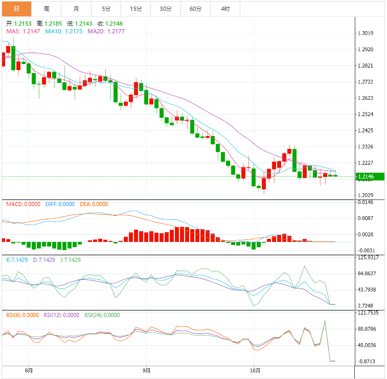 英镑仍然停留在1.2089(78.6%斐波那契回撤位)和之前的水平高点1.2303之间的短期范围内。由于上周形成的死亡交叉,该图表仍为负面,而20日简单移动均线继续引导该货币对走低。