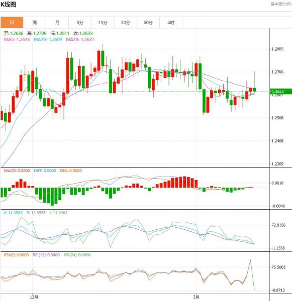 英镑/美元在盘初触及三周高点 1.2710 后,目前在 1.2675 附近震荡。如果能收复今天的高点,那么 1.2750 至 1.2800 之间的一组前期高点将发挥作用。