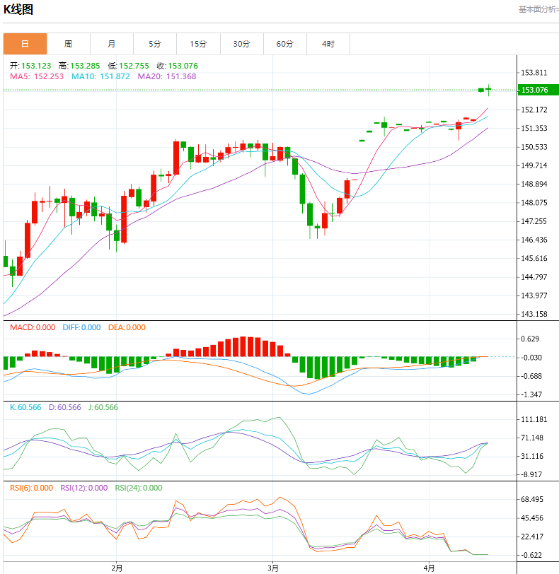 美元/日元突破 152.00,进入超买区域