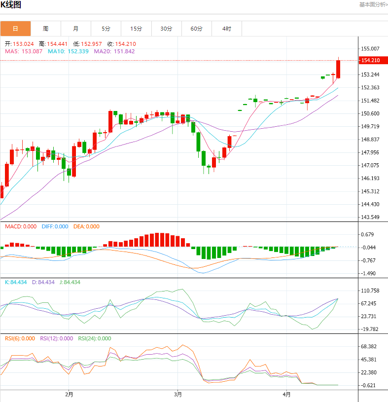 美元/日元继续进入危险区域,逼近 155.00 关键水平