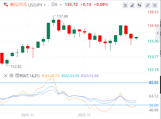 从技术角度看,隔夜波幅高点,即略高于156.00整数,可能成为美元兑日元的直接障碍。若持续强势继续上涨,可能会引发新一轮做空回补,推动现货价格接近157.00周,即周线高点。后续买盘应为进一步上涨铺平道路,接近157.45中级关口,最终达到11月触及的多月高点,约158.00点。