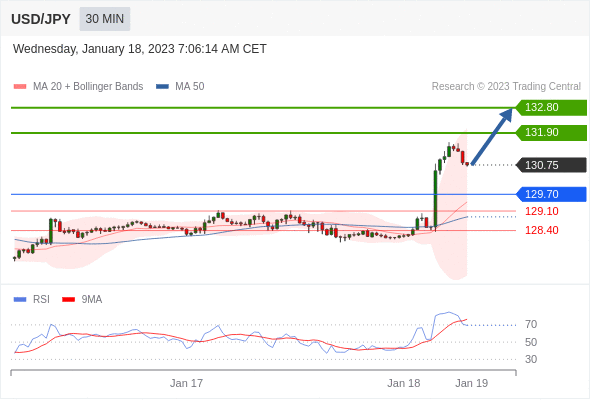 在 129.70 之上,看涨,目标价位为 131.90 ,然后为 132.80 。在 129.70 下,看空,目标价位定在 129.10 ,然后为 128.40。