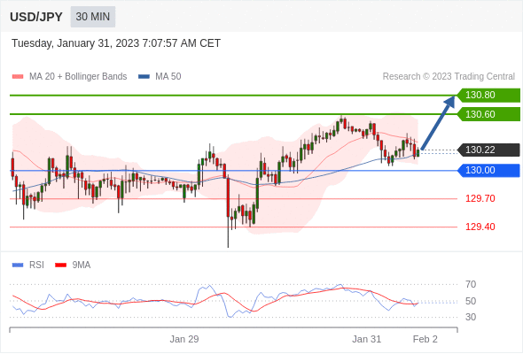 在 130.00 之上,看涨,目标价位为 130.60 ,然后为 130.80 。在 130.00 下,看空,目标价位定在 129.70 ,然后为 129.40。