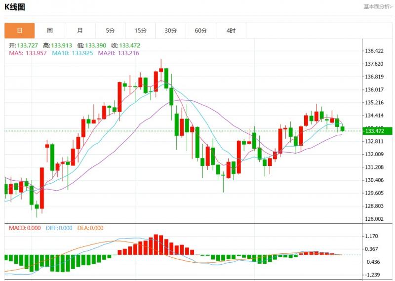 周三盘中,欧元兑美元报1.1047,涨幅0.69%;英镑美元报1.2470,涨幅0.55%;美元兑日元报133.464,跌幅0.20%。