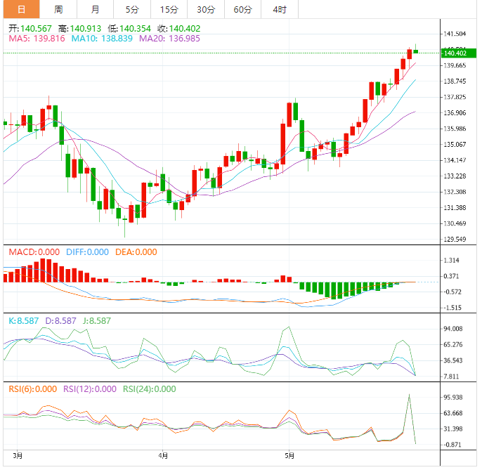 也就是说,上述通道的底线和之前5月2日的阻力线,分别在139.75和139.20附近,可以作为日元疲软期间的中间止损点。