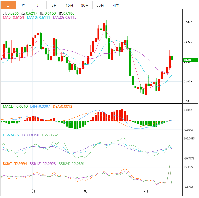 国家统计局发布的数据显示,5月份中国社会消费品零售总额同比增长12.7%,高于预期的13.6%和4月份的18.4%。此外,中国工业生产同比增长3.5%,低于预期的3.6%和之前的5.6%。与此同时,5月份固定资产投资同比增长4.0%,预期增长4.4%,前值增长4.7%。这些数据加剧了人们对全球最大经济体增长放缓的担忧,并令新西兰元等澳洲货币承压。