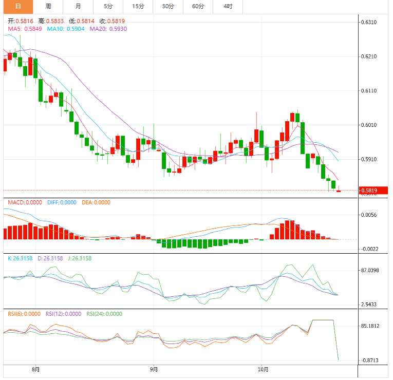 上周,第三季度消费者价格指数(CPI)上涨1.8%,低于预期的2.0%。年增长率从6.0%降至5.6%,低于普遍预期的5.9%。这一数据促使投资者调整了他们对新西兰储备银行(RBNZ) 11月加息的预期,导致纽元兑美元汇率面临下行压力。