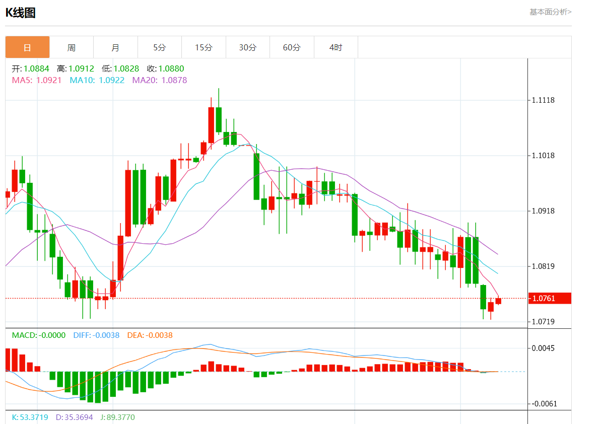 周三欧市盘中,欧元/美元最新报1.0759,日图涨0.05%.