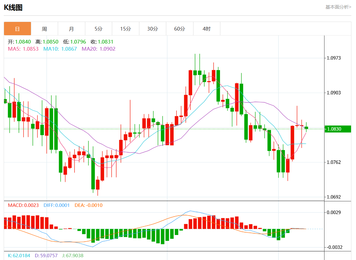 周一欧市盘中,欧元/美元最新报1.0834,日图跌0.03%.