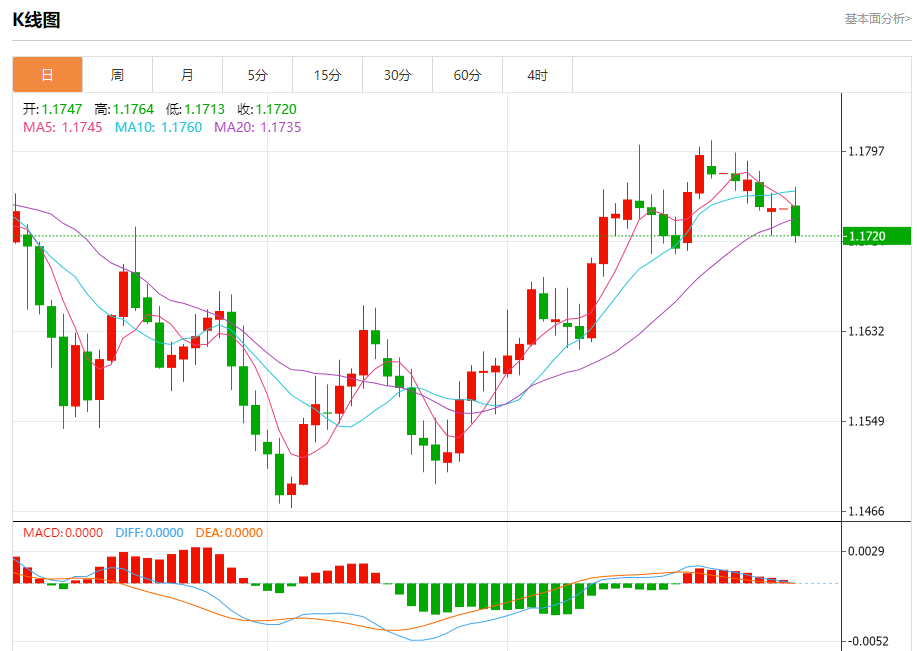 汇价高见1.1764,低见1.1713。上一交易日,汇价收于1.1744。