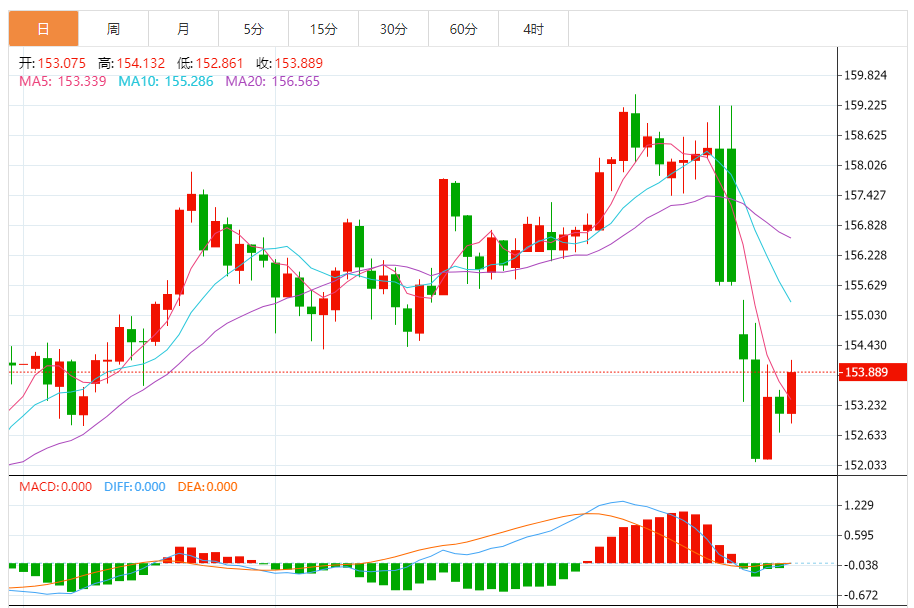 从159.13的高点到152.07的低点的38.2%的斐波那契回撤位154.77应限制初步反弹。 若日收盘高于后者,将改善复苏形态,并可能在动能正常化时延续涨幅,而未能突破上述阻力位将限制反弹并保持谨慎偏向。