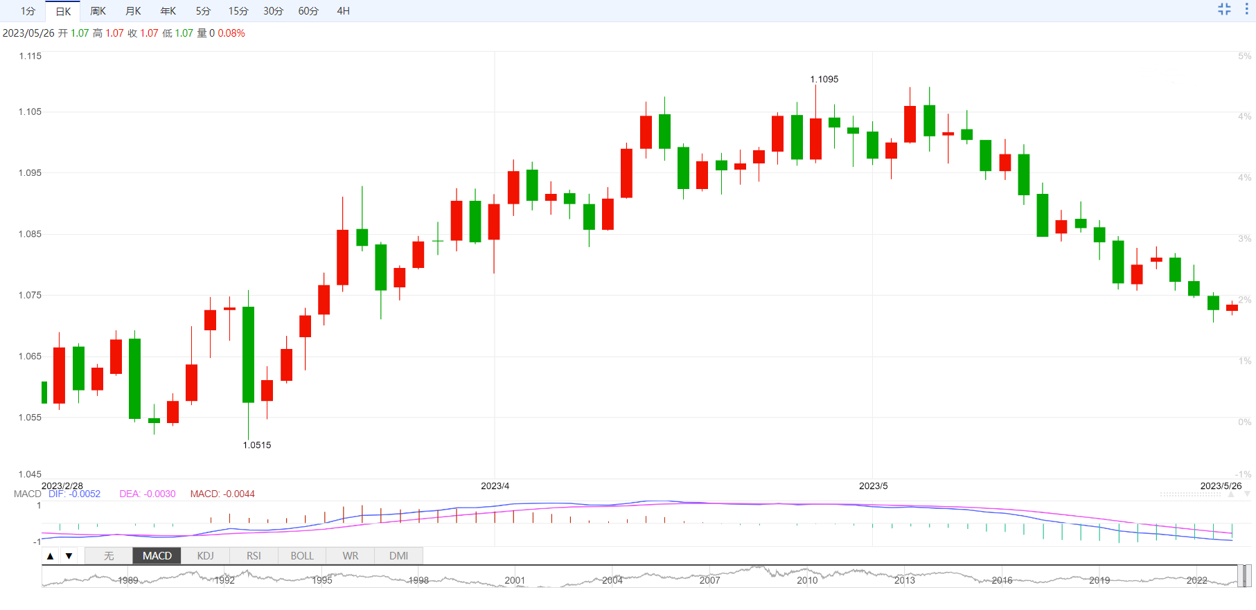 美元指数:截止发稿,美元指数下跌,现报104.11,跌幅0.11%。欧市盘前,对美联储暂停加息週期的预期飙升,对美元指数造成了很大的压力。由于美国地区银行的紧缩信贷条件有效地压制了通胀压力,美联储认为6月份的货币政策会议上更多的加息不太确定。