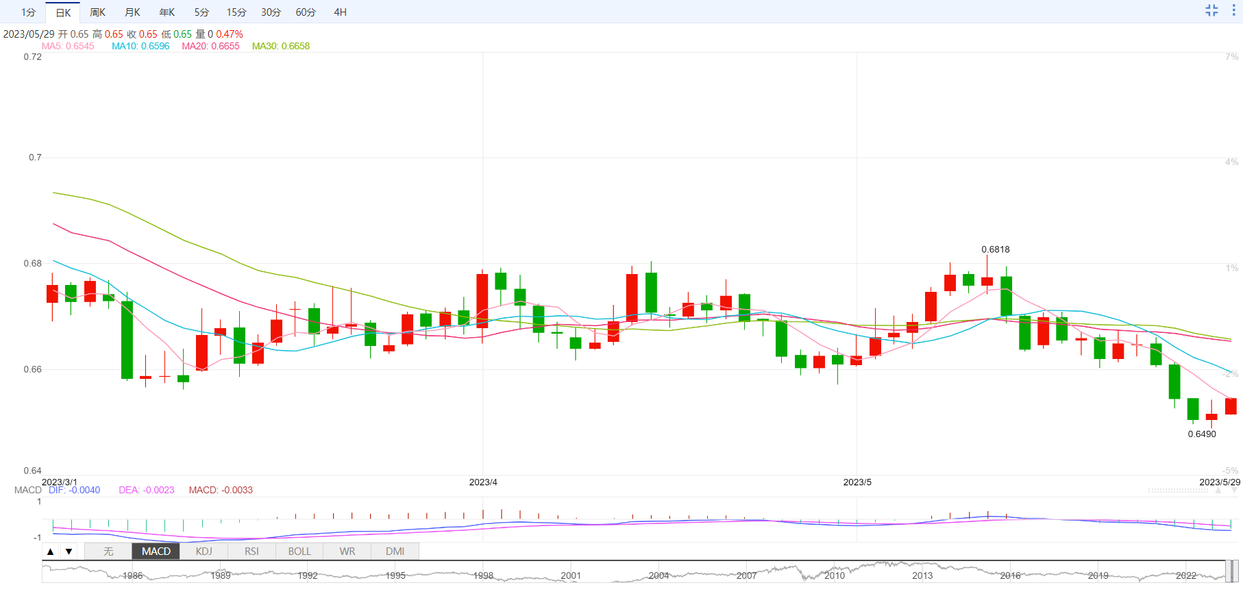 英镑/美元横盘于1.2350下方后,试图反弹。美国债务上限临时协议获批后美元指数抛售,美元指数出现了明显的下跌,这导致英镑/美元强劲。以凯文-麦卡锡为首的众议院共和党人已经批准两年内上调31.4万亿美元的美国债务上限,因为白宫同意削减预算开支,但仍然顽固地认为既不能削减医疗保险,也不能增加贫困。