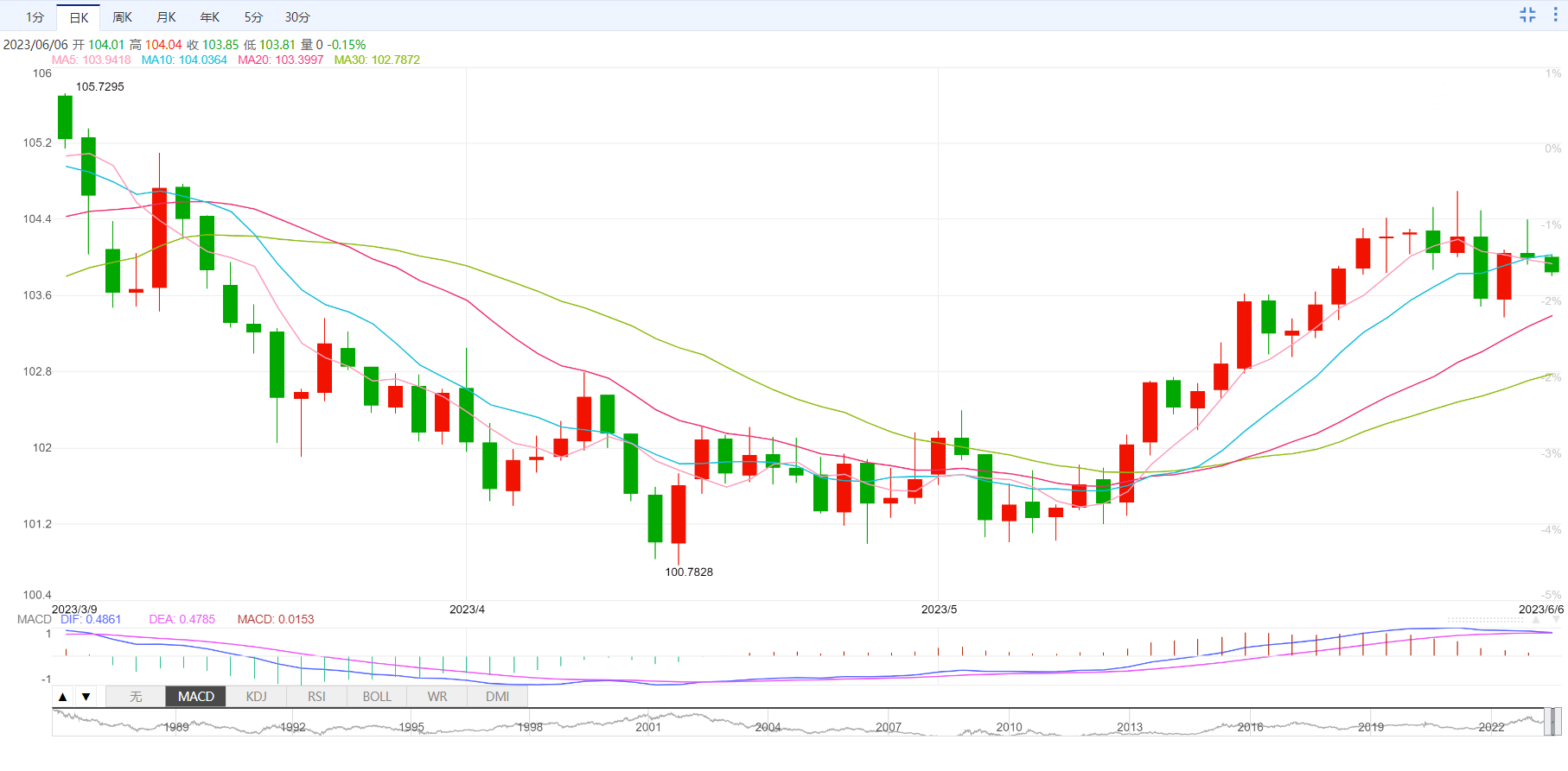 周一纽约盘区间103.93-104.40是初步支撑位和阻力位。
