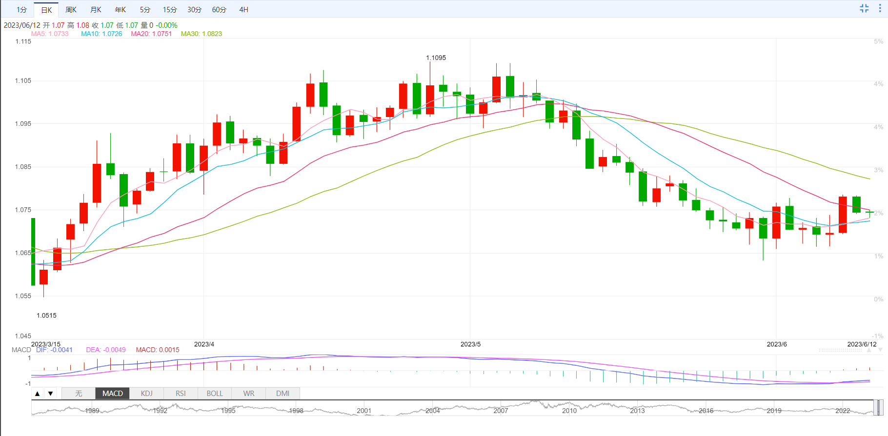 支撑位:1.0733 1.0717 1.069
