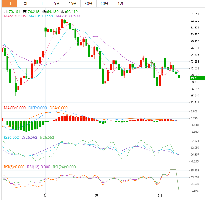 支撑位:69.83 69.2 68.17