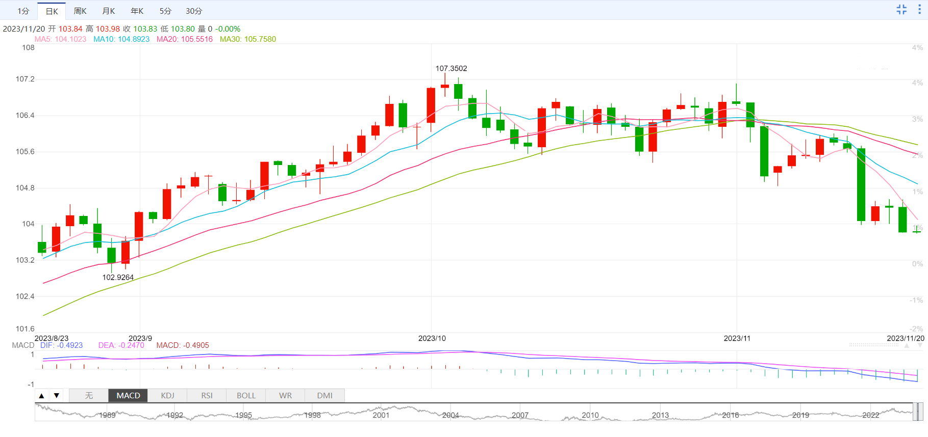 美元指数:截止发稿,美元指数报103.83,涨幅0.01%,最高103.97,最低103.79。美元以积极的基调开启了新的一周,并收复了周五的部分跌幅,跌至两个半月低点,这反过来又被视为欧元兑美元货币对的逆风。然而,任何有意义的美元复苏似乎仍然难以捉摸,因为越来越多的人认为美联储已经完成了加息,美国数据显示通胀降温速度快于预期。