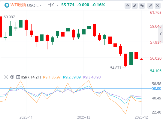 周五亚盘,原油交投55.77附近。市场正在权衡因俄乌和谈与委内瑞拉局势而日益加剧的供应端风险。地缘政治成为市场焦点。据彭博称,美国已准备好新一轮对俄罗斯能源行业的制裁,以防莫斯科拒绝接受和平协议。与此同时,特朗普总统表示结束战争的谈判“即将取得进展”,周末美俄官员将举行会晤。