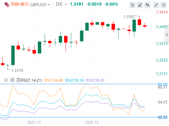 周二攀升至1.3570附近(去年9月中旬以来高点)后,受美元普遍反弹影响,汇价回吐部分涨幅。周三于1.3500附近进入盘整阶段。