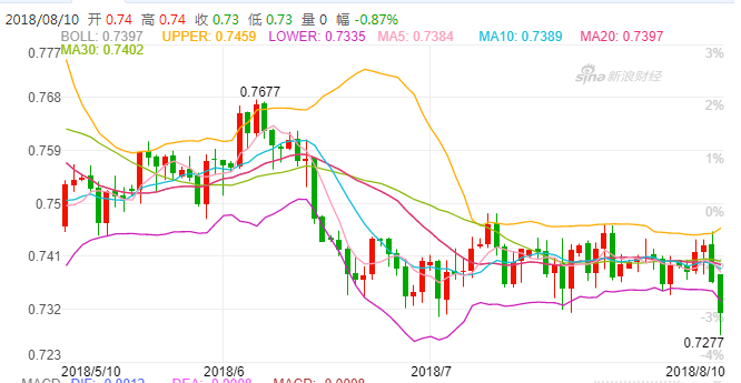 澳元兑美元:汇价现报0.7304,日内跌幅1.02%。市场担心土耳其里拉下滑将对欧洲的银行产生影响,令投资者出售澳元。