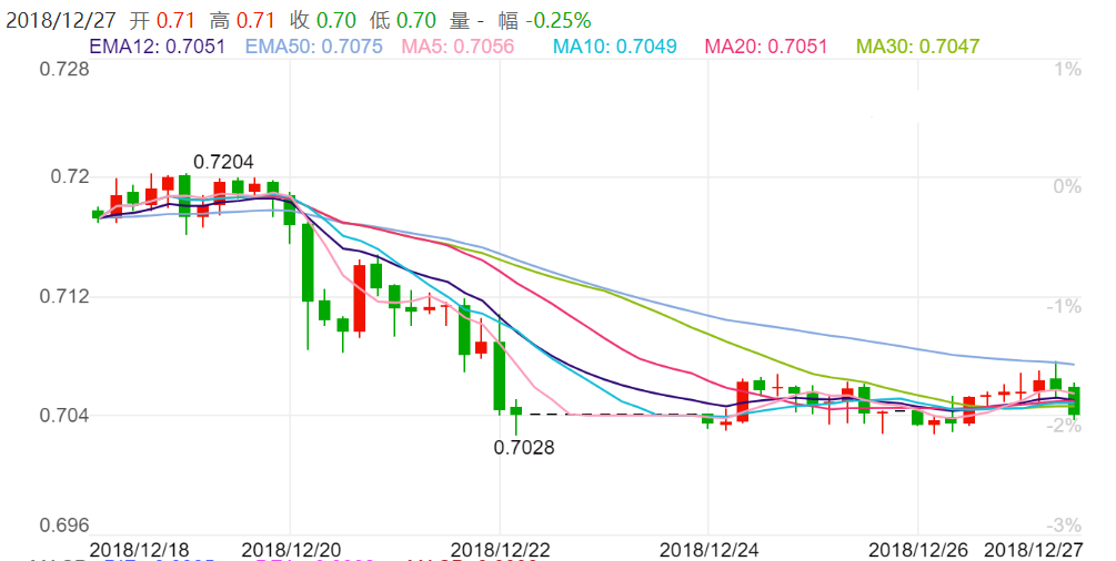 澳元兑美元:汇价现报0.7046,日内跌幅0.27%。由于澳洲市场休市,澳元波动不大,但主因是股市反弹并没有缓解市场对全球经济下滑的担忧。