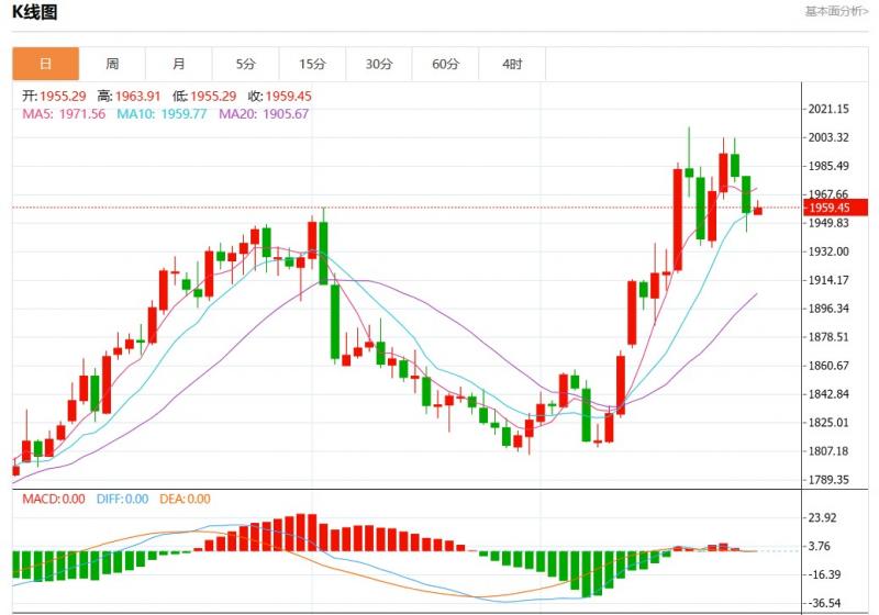 周二欧市盘中,现货黄金报1959.32,涨幅0.16%。