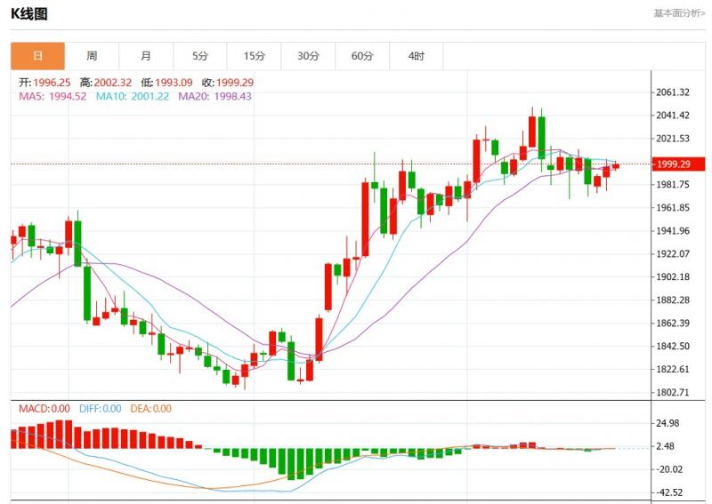 周三欧市盘中,现货黄金报1999.78,涨幅0.16%。