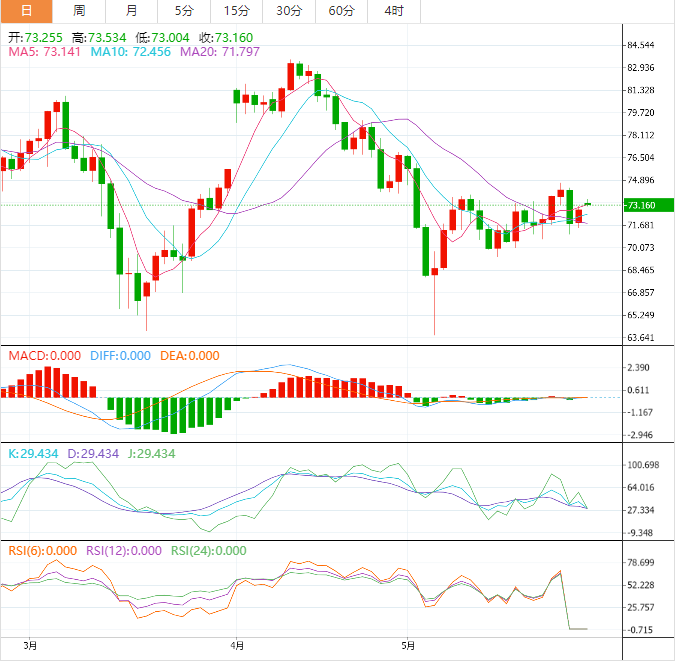 美原油震荡微涨,目前交投于73.15美元/桶附近,美国债务上限谈判达成初步协议,缓解了市场对债务违约危机的担忧,给油价提供支撑,上周数据显示,美国原油钻井减少5座,5月份累计减少21座,录得2020年6月以来的最大月度降幅,意味着未来原油供给下降,也给油价提供一些支撑。