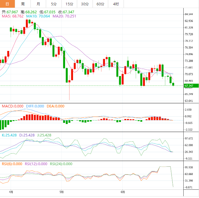 美原油窄幅震荡,目前交投于67.93美元/桶附近,API数据显示美国原油和汽油库存降幅超预期,给油价提供支撑,但有信号显示各国央行可能还没有完成加息,美联储、欧洲央行、英国央行等仍有进一步加息需求,这可能会加大经济衰退风险,进而打压原油需求,油价后市仍有进一步下行风险。