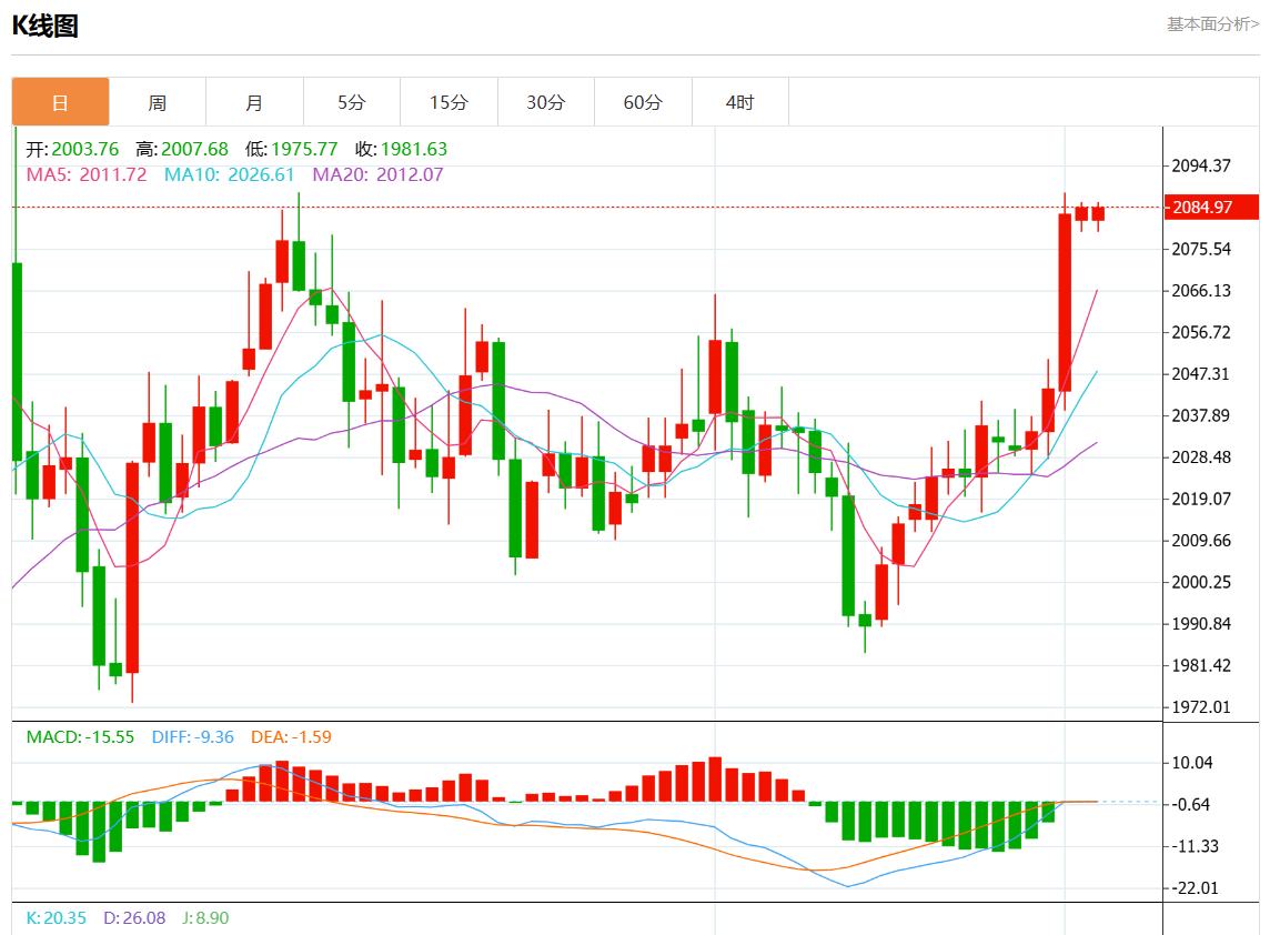 周一欧市盘中,现货黄金报2038.59,涨幅0.01%。
