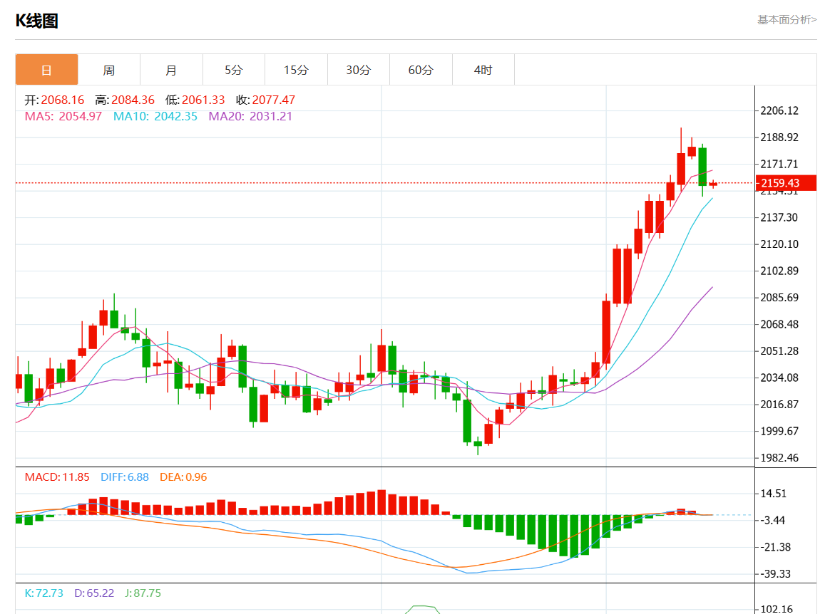 周三欧市盘中,现货黄金报2158.57,涨幅0.03%。