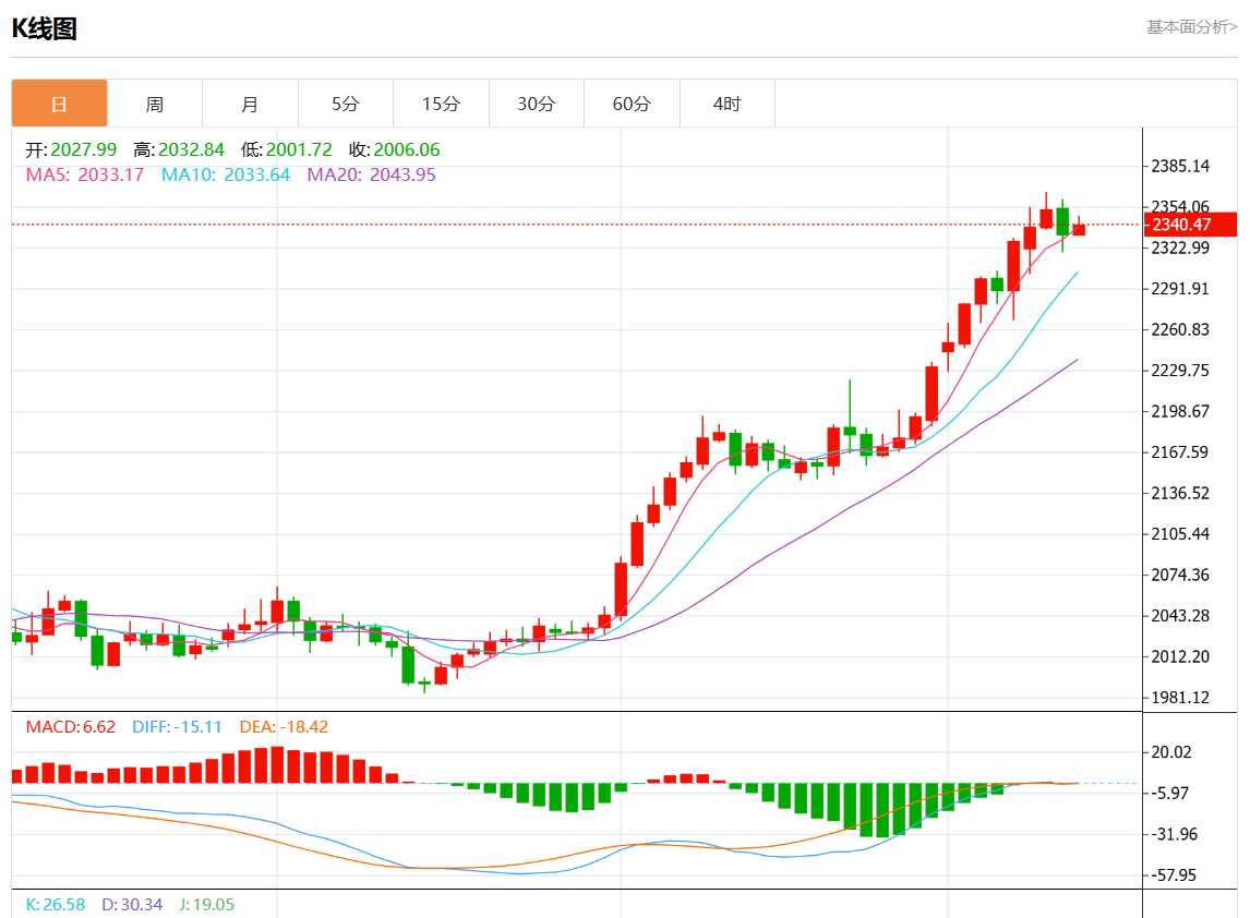 周四欧市盘中,现货黄金报2328.49,跌幅0.21%。