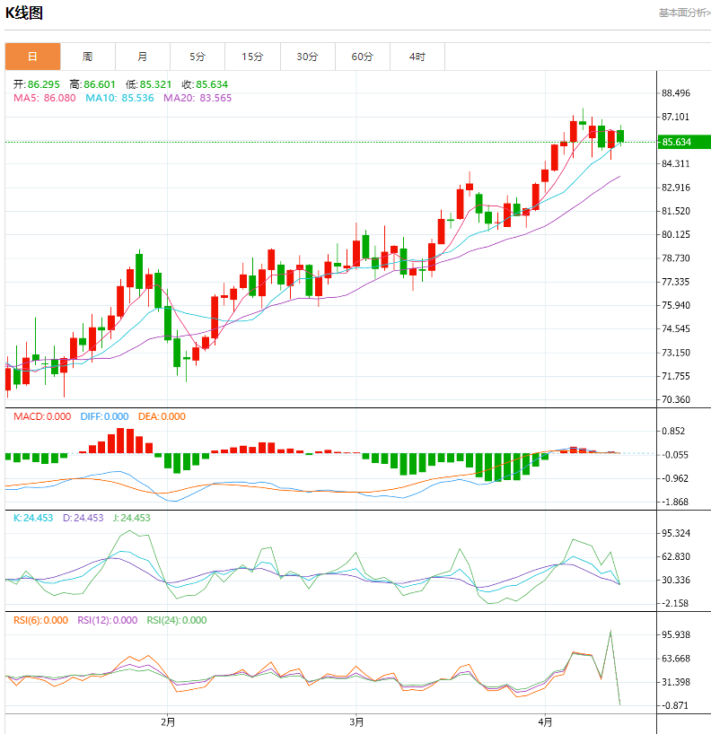 周四(4月11日),油价涨0.12%。昨天(4月10日)油价收涨,据美媒报道称,美国及其盟友认为,伊朗及其代理人即将对以色列发动袭击,所以原油期货随之上涨。