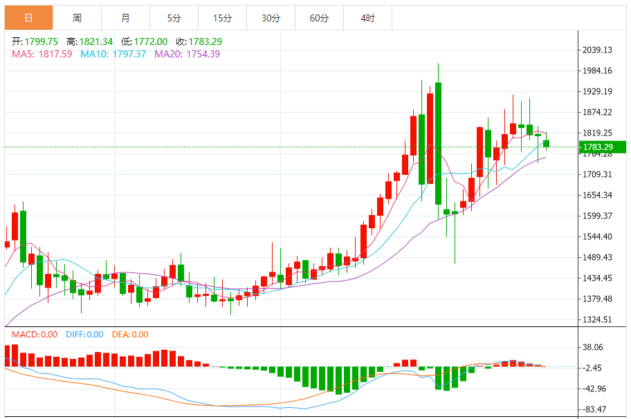 白银达到高点93.58后,上个交易日出现探底回升之势,上行再次逼近前高,整体的交易重心仍然维持在高位。均线系统上,当前价格仍然高于100均线,且60均线高于100均线,均线维持双双发散向上,表明当下的看涨之势不变。操作上,依托下方的支撑,尝试逢低做多的操作思路,关注支撑位89.20一线,如若在此震荡企稳,可考虑布局多单,上行关注93.58一线的压力,若上破,则多头进一步测试95.50附近的压力。
