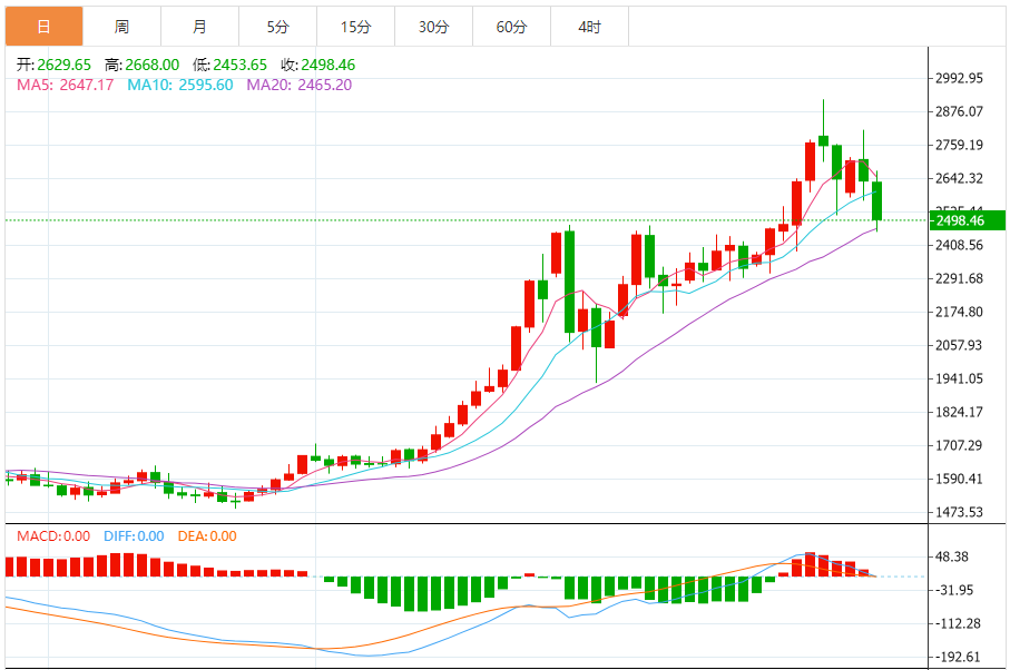 技术面与关键点位:日线级别,RSI从超买区间(78.5)快速回落至45附近,脱离超买但未进入超卖,MACD红柱大幅缩短,KDJ高位死叉形成,短期回调压力仍在,但下跌动能有所衰减;4小时级别呈现深V反弹后震荡整理,出现短暂企稳迹象。关键支撑位5000美元(整数关口+日内低点)、4900美元(前期整理平台),关键阻力位5100美元(短期反弹压力位)、5300美元(套牢盘密集区)。晚间若能守住5000美元支撑,有望触发技术性反弹。