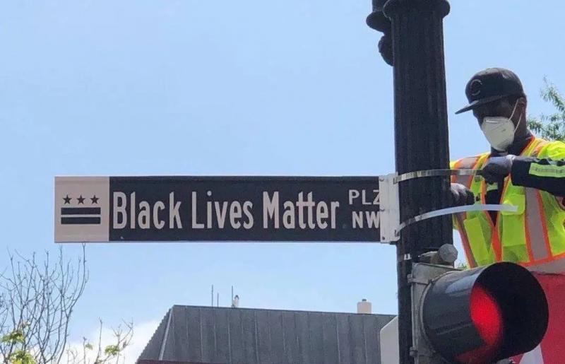 这还没完,令许多华盛顿市民震惊的是,16号街不仅改了名字,地面上还用黄色油漆刷上了“黑人的命也是命”的标语。
