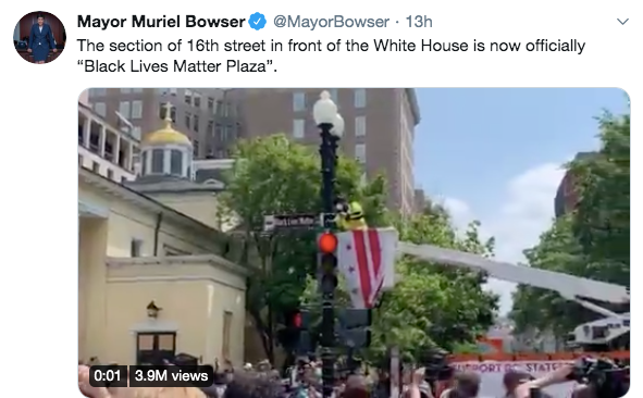 同样是5日当天,鲍泽突然发推特宣布:白宫门前的16号街已经正式改名为“黑人的命也是命”(Black Lives Matter)。