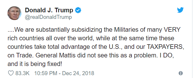 在这封信的刺激下,愤怒的特朗普把马蒂斯的离职时间从2月底的辞职信中提到的时间提前到了1月1日。