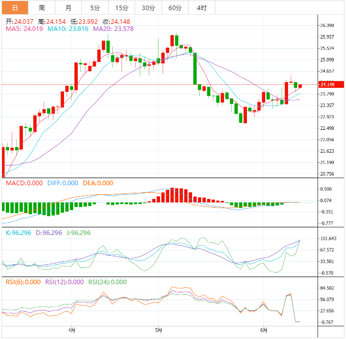 值得注意的是,银价上涨超过25美元将是至关重要的,因为它将使多头再次突破4月和5月的高点,即26.10-15美元左右。