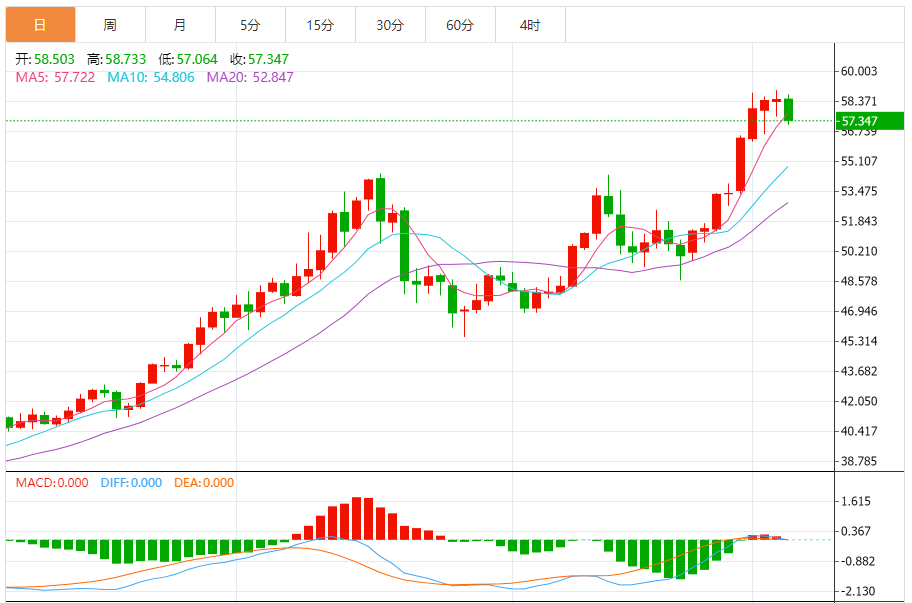 在上行方面,若持续突破58.98美元的历史高点,将使白银深入未知领域,60.00美元的心理关口将成为下一个看涨目标。平均方向指数(ADX)为28.56,正在上升,强化了强势的方向性偏向;只要价格保持在50日SMA之上,持续的强势趋势将有利于进一步上涨。