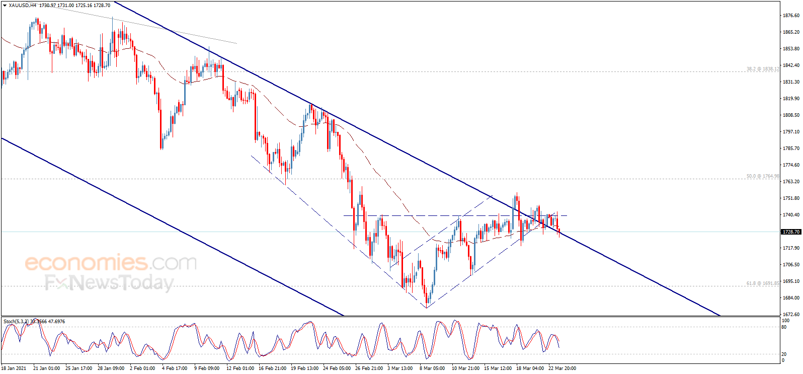 周三(3月24日)亚市早盘,现货黄金略微反弹,金价现报1728美元/盎司附近。知名财经网站Economies.com撰文,对金价后市走势进行分析。