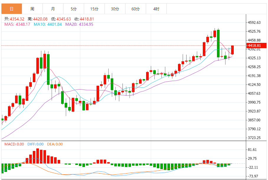 周一(1月5日),现货黄金目前位于4418.95美元/盎司附近,涨幅为1.99%。