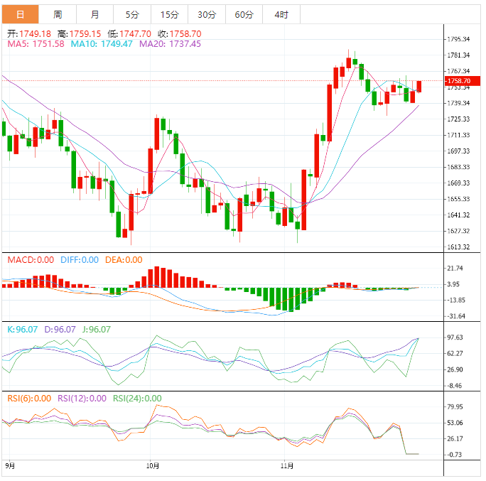 金价有望清除1757美元的强大阻力位,这是23.6%的斐波那契一天和一周的收敛点。近期升势仍受前一天高点1759美元的限制,该高点也是一天的SMA10点。