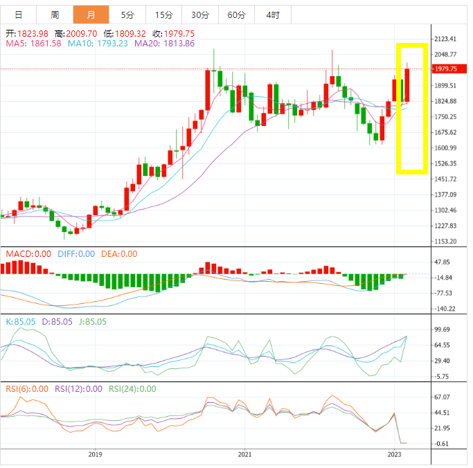国际金价自3月9日以来走势强劲。3月20日,现货黄金盘中一度站上2000美元/盎司,为2022年3月来首次。Comex黄金期货价格触及2000美元上方,距离2020年8月历史最高点2089美元/盎司仅一步之遥。